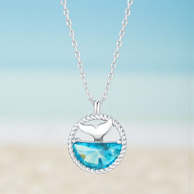 S925 Silver Mermaid Tears Necklace with Ocean Crystal Pendant